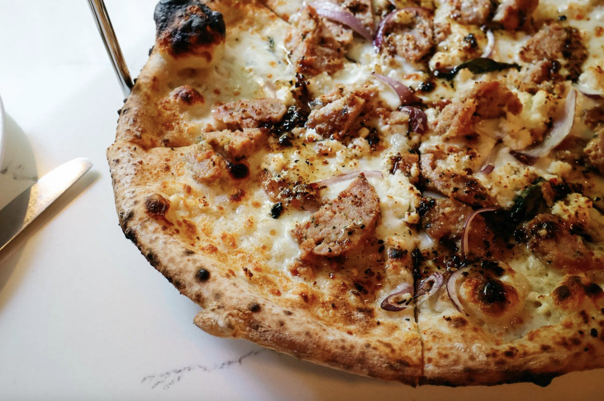 They use local ingredients the way local ingredients should be used—fresh, seasonal, not overdone. Each pie is made to order and comes out blistered just right from the wood-fired oven, crust with that elusive balance of chew and char. There’s creativity on the menu, but it never feels like someone’s throwing ingredients at a wall just to go viral on TikTok. These are thoughtful, well-practiced combinations that work because someone tested them—over and over and over again.